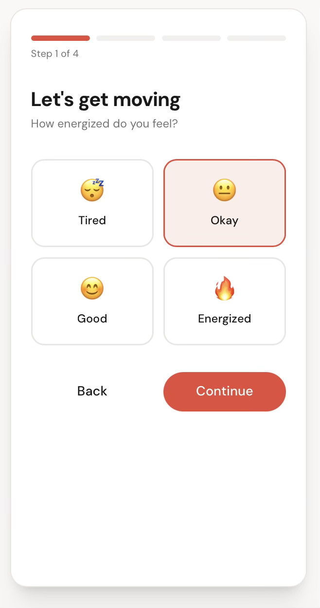 The fitness app ecosystem splits into two extremes: easy to start but static, or personalized but high commitment onboarding flows. Neither supports flexible movement in the in-between moments of the day.
